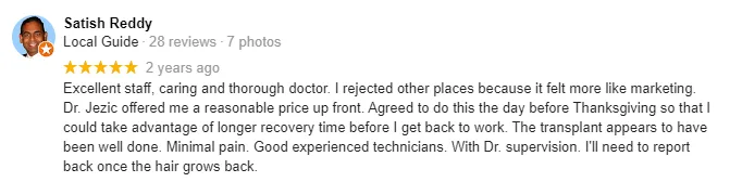 It is my sincere intent to treat all patients with the utmost care and respect. I am confident in my ability to achieve optimal hair restoration results with minimal discomfort to my patients and little or no disruption to their daily routines."